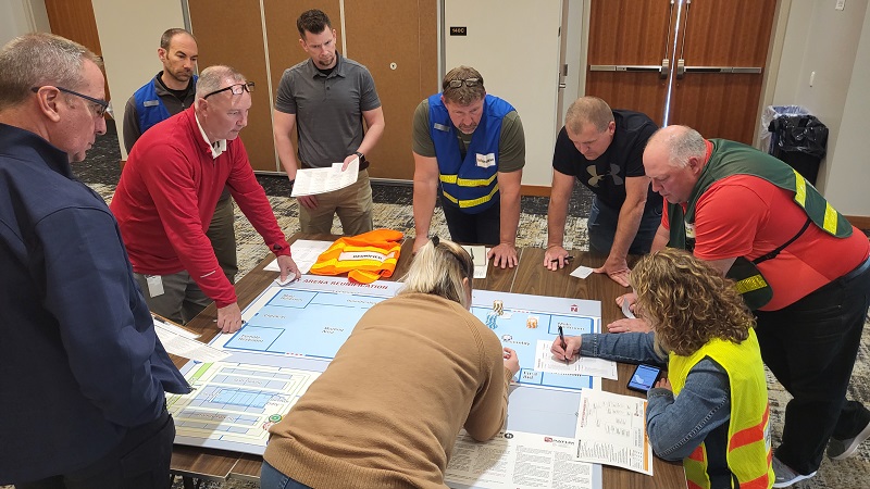 Counterstriketm is a revolutionary tabletop training tool that is simple to learn, easy to use and readily portable. Counterstriketm utilizes uniquely crafted, accurate scale, collapsible environment boards which provide a global view by all training participants. The system includes staging and command boards to develop those critical functions and poker-style resource chips that represent equipment, vehicles and various response or school personnel. Sets of dice simulate random chance and the unpredictability of not only the suspects’ movements, but also casualties incurred and the deployment and arrival of responding resources.